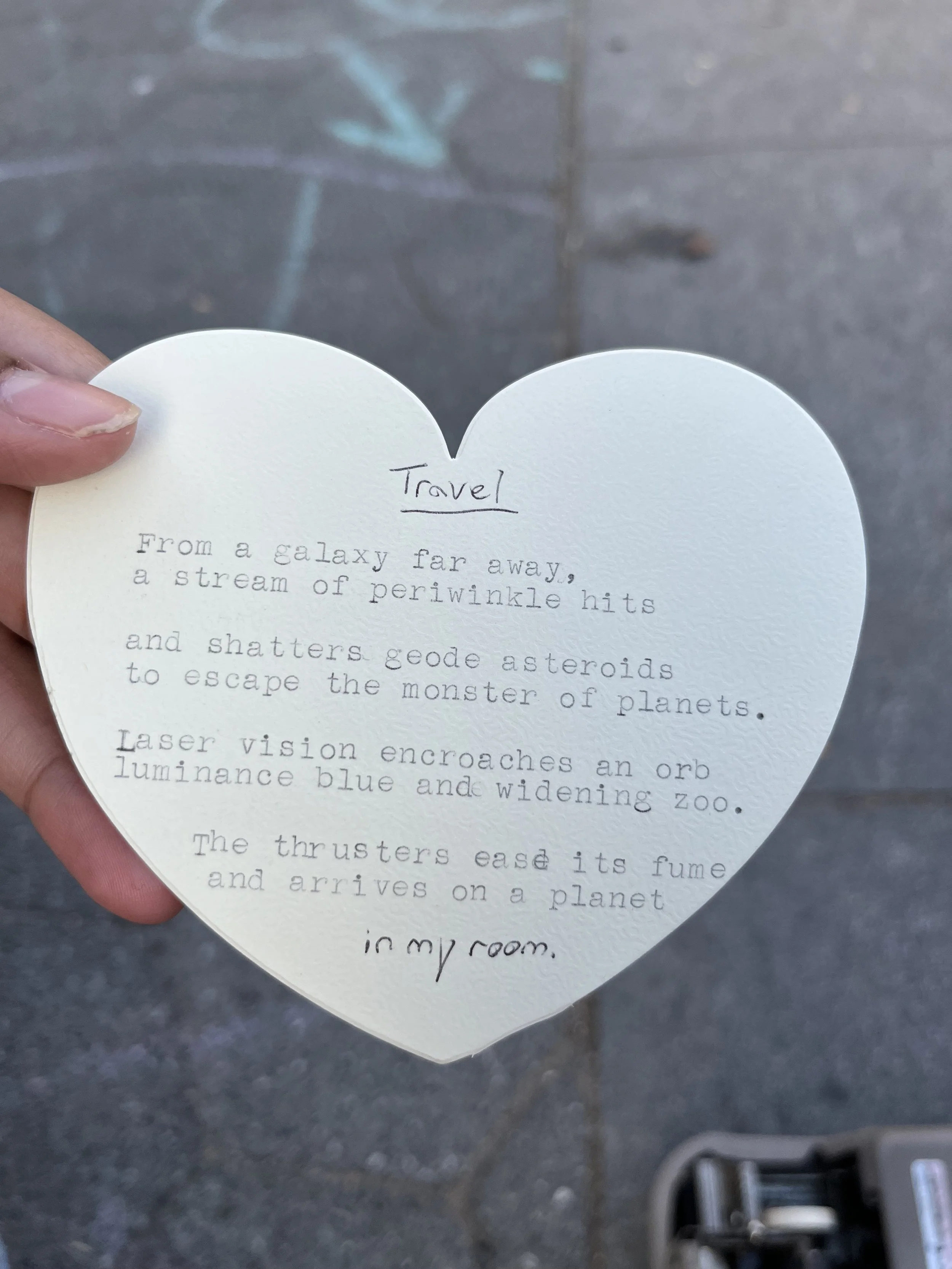 Spring 2015, I saw a photo of a man on the street typewriting poetry.