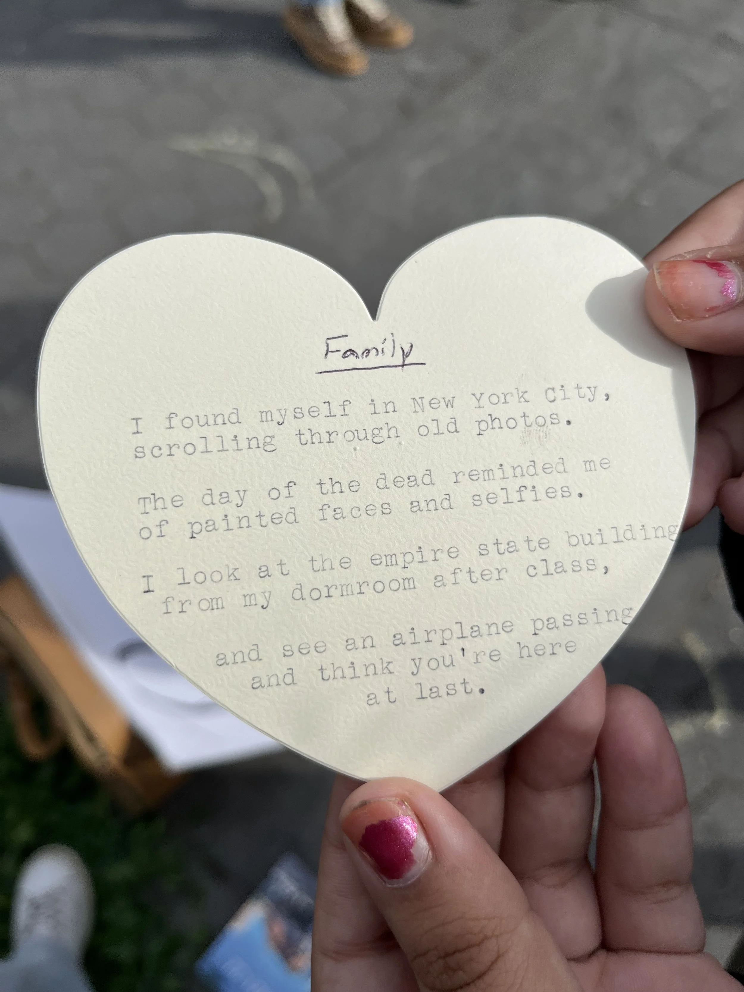 Thank you for the below! We have been lucky enough to enjoy your poems for some time now, and I always bring visiting friends and family to stop by to grab a poem. You have helped us celebrate graduations, anniversaries, and just average weekends. We are so excited to welcome our out of town guests to NYC with this lovely example of the artistry that makes it so special!